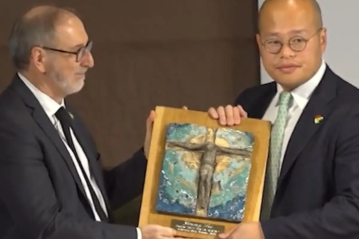 A ritirare il premio è il figlio, Sebastien Lai, al posto di suo padre, Jimmy Lai, imprenditore e giornalista di Hong Kong incarcerato dal regime cinese per la sua battaglia a difesa della libertà di stampa e della dignità umana. È, infatti, Jimmy Lai a ricevere il riconoscimento assegnato in occasione della prima edizione del Premio ‘Fatti per la Verità’, istituito da La Nuova Bussola Quotidiana per riconoscere chi difende la verità e la libertà con coerenza e coraggio, anche a costo della propria vita.