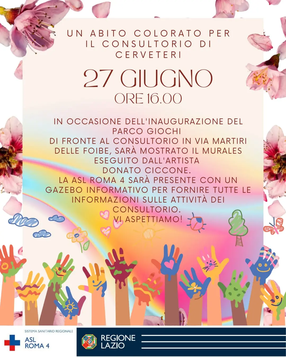CERVETERI - In occasione dell'inaugurazione del parco giochi in via Martiri delle Foibe, previsto per questo pomeriggio alle 16, verrà allestito un punto informativo sul consultorio del comune di Cerveteri, struttura che affaccia sul parco giochi.