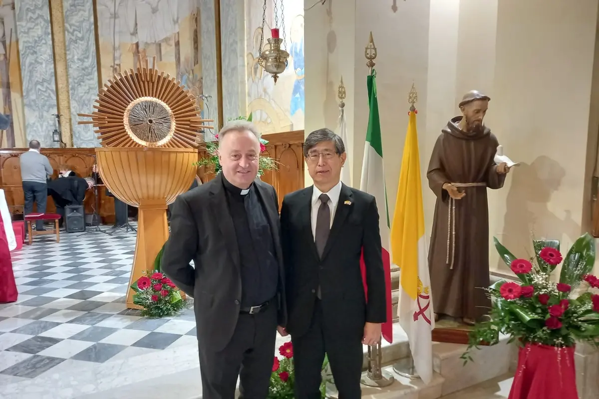 Particolarmente sentite le parole di ringraziamento rivolte a Sua Eccellenza l’Ambasciatore Akira Chiba, giunto al termine del suo mandato (nella foto con don Giovanni Demeterca). «Desidero esprimere la mia gratitudine – afferma don Giovanni – a un diplomatico di grande spessore umano e spirituale, con cui ho avuto il piacere di condividere numerosi momenti culturali e religiosi. La sua presenza è stata un dono prezioso per la nostra comunità e per il legame di amicizia tra i nostri popoli».