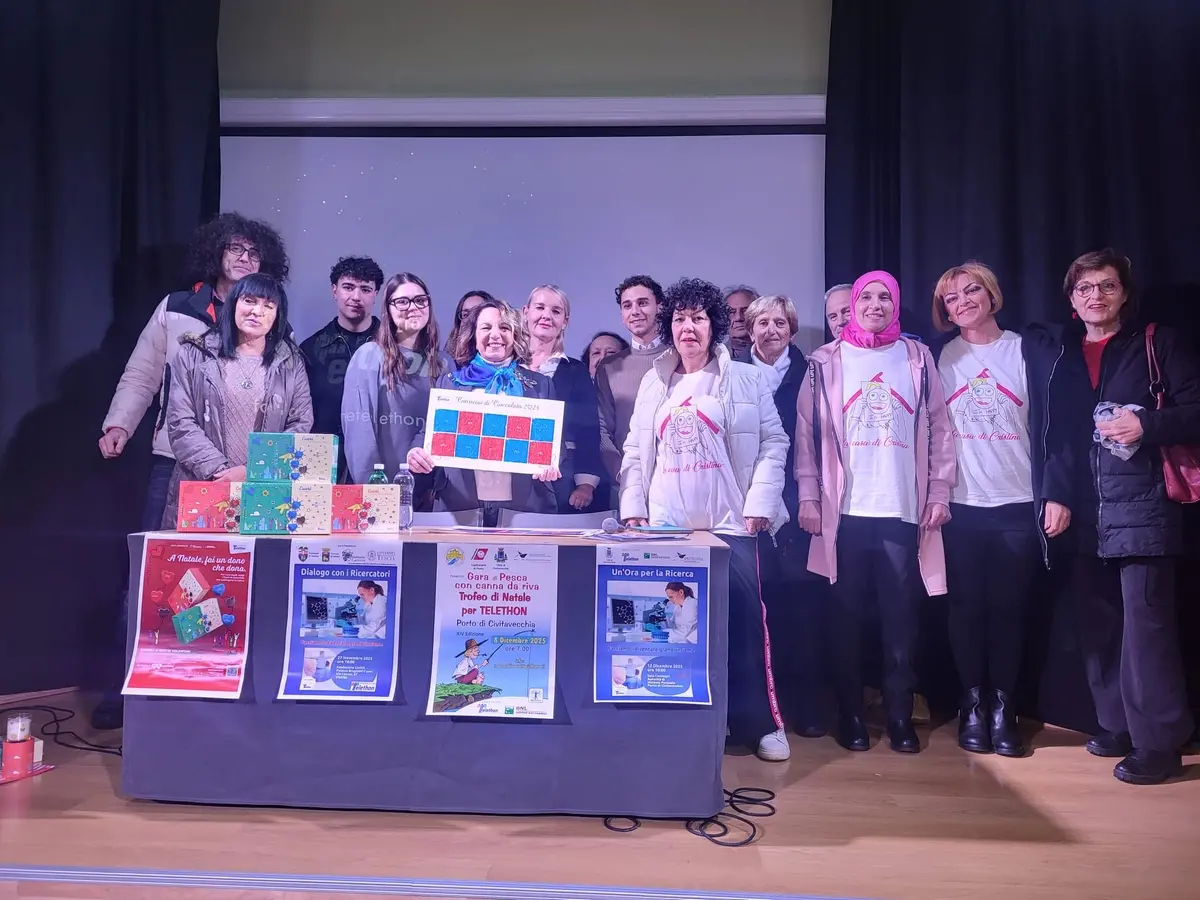L’8 dicembre alle 7 torna la gara di pesca con canna da riva “Trofeo di Natale per Telethon” al porto (info a marcocivitavecchia@libero.it), il 12 dicembre alle 10 appuntamento con “Un’ora per la ricerca”, come sempre presso la sala convegni dell’Adsp: collaboreranno gli studenti del super Istituto d'Istruzione Secondario Stendhal-Calamatta, con la dirigente Giovannina Corvaia, mentre Laura Gurrado allieterà tutti, come sempre, con i suoi gruppi canori. E poi i tanti banchetti allestiti dai volontari per poter acquistare i cuori di cioccolato, che fanno bene alla ricerca, al cuore e all’animo. Ancora il 13 dicembre alle 18.30 presso la Parrocchia San Francesco di Paola, con la collaborazione del parroco don Federico, la Filarmonica di Civitavecchia, guidata dalla presidente Giorgia Gallinari e diretta dal maestro Riccardo Schioppa propone il 13^ Note di Natale-Concerto per Fondazione Telethon. Quest’anno in prima linea anche gli alunni del Liceo delle Scienze Umane, coordinati dalla professoressa Pamela Pierotti, decisi a dare il proprio contributo per una buona causa.