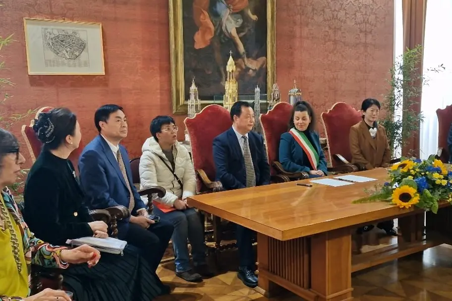 Alleanza tra Viterbo e due comitati cinesi per lo sviluppo di relazioni e progettualità comuni nei settori del turismo, agricoltura, economia e cultura. È stato firmato ieri pomeriggio, nella sala rossa di Palazzo dei Priori, il memorandum di collaborazione tra il Comune di Viterbo e due comitati cinesi, quello provinciale del Cppcc (Provincial Committee of the Chinese People’s Political Consultative Conference) dell’Hubei e il Comitato municipale Cppcc di Suizhou e di Jingzhou. Queste ultime sono due città, rispettivamente, con oltre 2 e 5 milioni di abitanti, che basano la propria economia sugli stessi settori di Viterbo, in particolare l’agricoltura, il turismo e la cultura. Ad accogliere la delegazione cinese sono state la sindaca di Viterbo Chiara Frontini e l’assessora ai gemellaggi, alle politiche comunitarie e internazionali Patrizia Notaristefano, insieme al presidente del Sodalizio dei facchini di Santa Rosa, Massimo Mecarini; al segretario della Camera di Commercio Francesco Monzillo; ai rappresentanti delle associazioni di categoria e alcuni imprenditori termali. Prima della firma dell’accordo la delegazione cinese ha visitato la sala consiliare del comune di Viterbo e gli spazi interni. «Quello di oggi – ha detto la prima cittadina di Viterbo – un momento d’ispirazione e valore internazionale per Viterbo. Firmiamo un memorandum d’amicizia cin due grandi città cinesi che, con Viterbo, hanno un’economia basata sulle vocazioni artistica, culturale e agricola: queste somiglianze permetteranno proficui scambi per il futuro. Oltre al Comune di Viterbo abbiamo voluto condividere quest’esperienza con il dipartimento di Beni culturali dell’Unitus, il Sodalizio dei facchini di Santa Rosa e il mondo imprenditoriale viterbese perché vogliamo scambi con la Cina che portino ricadute economiche e culturali sul territorio».