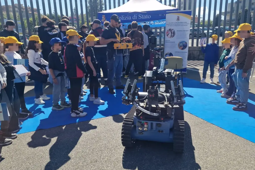 I giovani visitatori hanno avuto anche l’opportunità di ammirare le motociclette e le autovetture specializzate per il controllo del territorio, di divertirsi con un cane poliziotto e di osservare il lavoro degli artificieri della polizia.