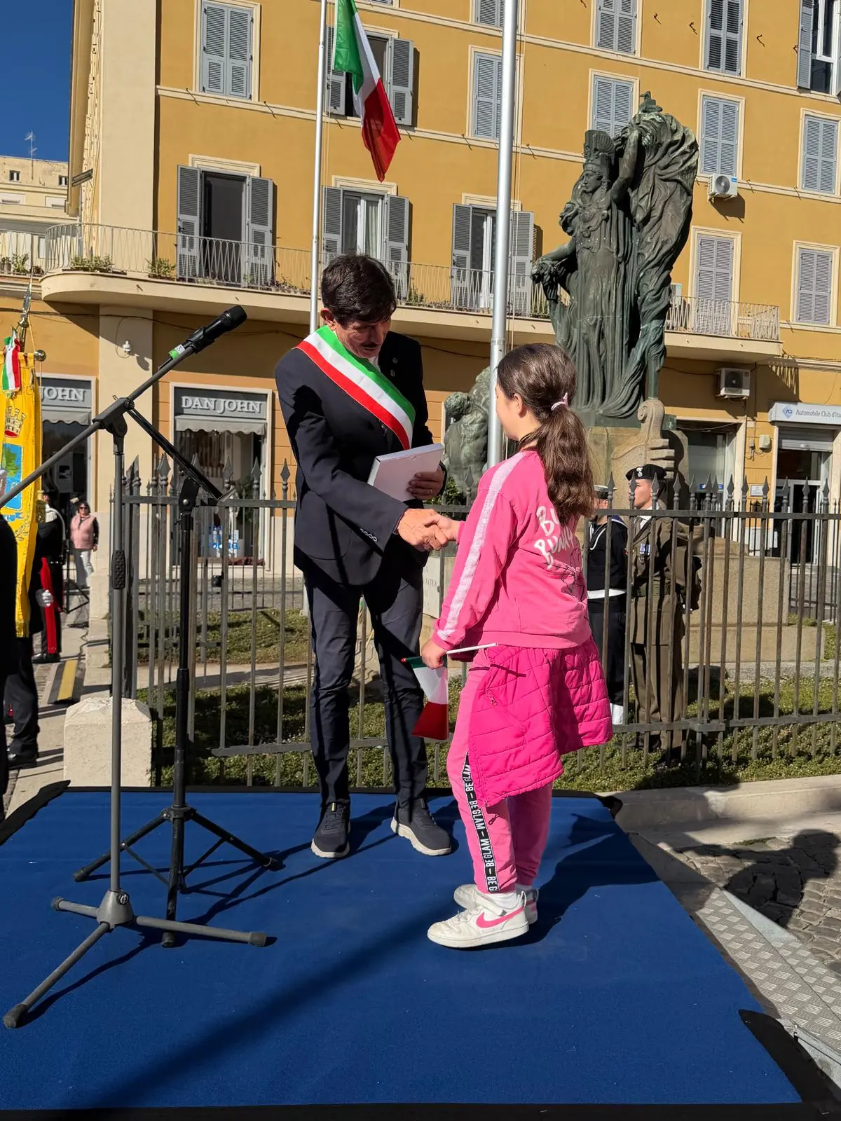 «Abbiamo reso omaggio ai caduti della Prima Guerra Mondiale e a tutte le donne e gli uomini che hanno servito e servono l’Italia con coraggio e dedizione – ha commentato il Sindaco – il 4 novembre non è soltanto una data della memoria, ma un invito alla responsabilità. La storia ci ricorda quanto siano fragili la pace, la democrazia, il senso di comunità. In un mondo ancora segnato da conflitti e tensioni internazionali, difendere questi valori è un dovere quotidiano. Questa mattina sono stato felice di vedere tantissimi bambini e giovani studenti partecipare con entusiasmo. A loro abbiamo donato il Tricolore e una copia della nostra Costituzione: perché la memoria non va solo celebrata, ma trasmessa. La libertà, l’uguaglianza, la giustizia si costruiscono a partire da chi oggi cresce e domani guiderà questo Paese. Essere italiani significa proprio questo: sentirsi parte di una comunità, scegliere la cooperazione alla divisione, promuovere il bene comune con gesti concreti e quotidiani. Grazie alle nostre Forze Armate per il servizio prezioso che svolgono in Italia e all’estero nel nome della sicurezza, dei diritti e della Costituzione. Grazie a tutte e tutti coloro che – ha concluso – hanno preso parte a questa giornata così significativa per la nostra storia e per il nostro futuro».