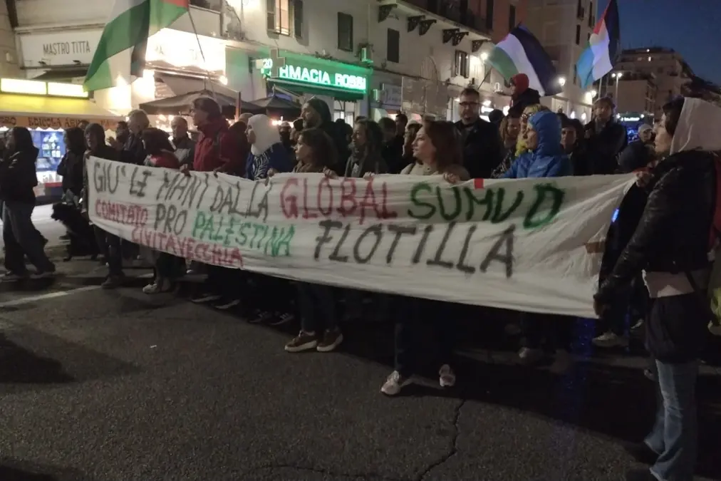 CIVITAVECCHIA – Manifestazione a sostegno della Global Sumud Flotilla e di Gaza, nata in forma spontanea dopo i fatti di ieri. Circa 300 persone si sono radunate a piazza Calamatta per poi muoversi lungo corso Marconi in direzione dell’area portuale.
