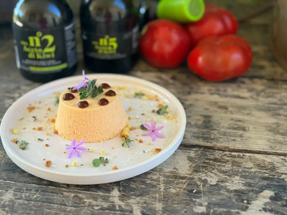 Il suo è stato uno di quei regali che per me profumano di amicizia e di stagioni che cambiano e che mi fanno venire voglia di mettermi ai fornelli per creare qualcosa di nuovo. A questa bavarese ho poi aggiunto un crumble di taralli per darle maggiore consistenza ed, a completamento del piatto, ho voluto far cadere anche qualche goccia di gel di aceto di kiwi numero 5 dell’Azienda Agro del kiwi che, con il suo tocco fruttato e vivace, ha esaltato ancora di più la dolcezza naturale dei miei peperoni.