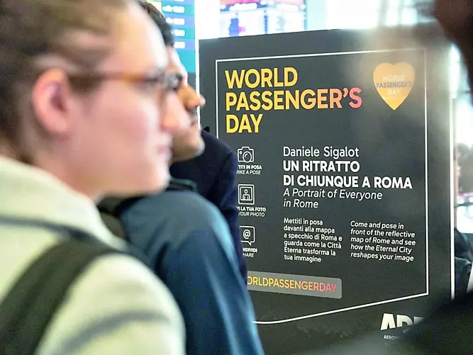 FIUMICINO - Anche quest’anno, Aeroporti di Roma, parte del Gruppo Mundys, aderisce alla Giornata Mondiale del Passeggero promossa da Aéroports de la Côte d’Azur, confermando il proprio impegno per un’accoglienza sempre più attenta, innovativa e centrata sull’esperienza del viaggiatore. Un percorso di qualità riconosciuto a livello globale: per l’8° anno consecutivo, l’aeroporto Leonardo da Vinci di Roma Fiumicino è stato infatti premiato da Aci World come miglior scalo d’Europa per la qualità dei servizi offerti ai passeggeri. Per l’occasione, all’aeroporto Leonardo da Vinci di Roma Fiumicino presentata l’installazione “Un ritratto di chiunque a Roma” dell’artista concettuale Daniele Sigalot, già autore della scultura Master of Mistakes, esposta al Terminal 1 dello scalo. L’opera – una grande mappa di Roma incisa su acciaio lucido – ha fatto da sfondo per uno shooting fotografico aperto a tutte le persone in transito durante la giornata.