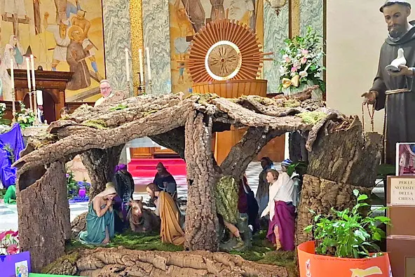 TOLFA - In un tempo in cui il Natale rischia troppo spesso di smarrirsi tra luci abbaglianti, marchi, consumismo e apparenza, c’è chi, con semplicità e sapienza antica, riesce ancora a restituire il senso più autentico della Natività. Accade a Civitavecchia, nella parrocchia dei Santi Martiri Giapponesi, dove anche quest’anno ha preso vita un presepe capace di emozionare, sorprendere e far riflettere. A realizzarlo sono stati ancora una volta i nonni di Tolfa, guidati dall’estro e dalla straordinaria manualità di Italo Ciambella, affiancato da Carlo, Franco e Checco: quattro uomini che non portano solo esperienza e tradizione, ma una vera e propria arte. Mani d’oro, quelle dei 4 nonni, capaci di trasformare materiali poveri e di recupero – tronchi, legna, sughero, muschio – in autentici capolavori carichi di significato.Non c’è plastica, non c’è artificio, non c’è ostentazione: c’è la natura, c’è il rispetto per ciò che è semplice, c’è il richiamo profondo alla tradizione del presepe di San Francesco, proprio lì dove per tanti anni hanno vissuto i francescani e dove il Santo di Assisi è ancora oggi profondamente venerato. Realizzare un presepe ispirato al suo stile, in questo luogo, non è soltanto un gesto artistico, ma un atto di fede, di memoria e di coerenza spirituale.Da quattro anni, questi nonni tornano ogni Natale nella parrocchia dei Santi Martiri Giapponesi, offrendo gratuitamente il loro tempo, la loro fatica e la loro creatività. E ogni anno il presepe è diverso: sempre nuovo, sempre più suggestivo, sempre più capace di toccare il cuore di chi lo osserva. Un lavoro che cresce, si rinnova e si perfeziona, mantenendo però intatto il suo messaggio essenziale.A spingerli a tornare, anno dopo anno, non è soltanto l’amore per il presepe e per la tradizione, ma soprattutto un legame umano profondo che resiste al tempo. Italo Ciambella, Carlo, Franco e Checco arrivano da Tolfa ogni Natale perché sono ancora fortemente e sinceramente legati a don Giovanni De Meterca, oggi parroco dei Santi Martiri Giapponesi, ma per quasi trent’anni parroco e guida spirituale della comunità di Tolfa. Un rapporto fatto di stima, affetto autentico e riconoscenza, che non si è mai spezzato e che continua a vivere attraverso gesti concreti.È proprio questo legame speciale con don Giovanni, parroco appassionato, presente e profondamente amato, a dare ogni anno nuova forza ed entusiasmo a questi nonni straordinari. Un affetto che si trasforma in servizio, in dono, in bellezza condivisa. E così, attraverso il presepe, si rinnova non solo una tradizione, ma anche una storia di amicizia, fede e comunità che attraversa i luoghi e le generazioni.Davanti a questa Natività si fermano i bambini, le famiglie, i parrocchiani. I più piccoli guardano incantati, gli adulti riscoprono emozioni dimenticate, tutti ritrovano il silenzio e la profondità che il Natale dovrebbe sempre portare con sé. Don Giovanni Demeterca (giudice unico diocesano della Sacra Rota), la comunità parrocchiale dei S. M. Giapponesi, insieme ai bambini del catechismo, alle loro famiglie e alle catechiste, desiderano esprimere un ringraziamento sincero e commosso a Italo Ciambella, Carlo, Franco e Checco. Un grazie che va oltre le parole, perché il dono che questi nonni fanno ogni anno è un dono raro. Il talento e la generosità di Italo Ciambella non si fermano però alle mura della chiesa. I suoi capolavori, realizzati sempre con materiale di riciclo, continuano a diffondere stupore e sorrisi anche in altri luoghi della città. Uno di questi è stato donato alla classe seconda C del plesso Don Papacchini, oltre alla natività l’opera raffigura un Babbo Natale sull’altalena, insieme a un simpatico pupazzo di neve: una scena gioiosa e poetica che parla ai più piccoli . Altri due capolavori di Italo Ciambella sono invece esposti nel negozio “Sfizio Divino”, dove attirano l’attenzione e l’ammirazione di clienti e visitatori. Un altro presepe realizzato da Italo Ciambella ha trovato, infine, una collocazione dal valore profondamente umano e simbolico: per tutto il periodo natalizio, fino al 13 gennaio, sarà esposto all’interno di una RSA.