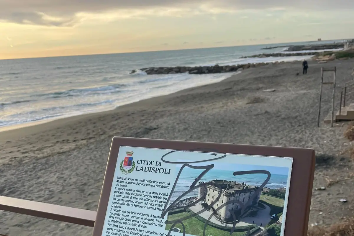 LADISPOLI - Il nuovo lungomare ladispolano preso ancora di mira dai vandali. Questa volta a essere imbrattati i pannelli illustrativi posizionati lungo il percorso. Azione vandalica subito fermamente condannata sui social. (foto dai social) ©RIPRODUZIONE RISERVATA