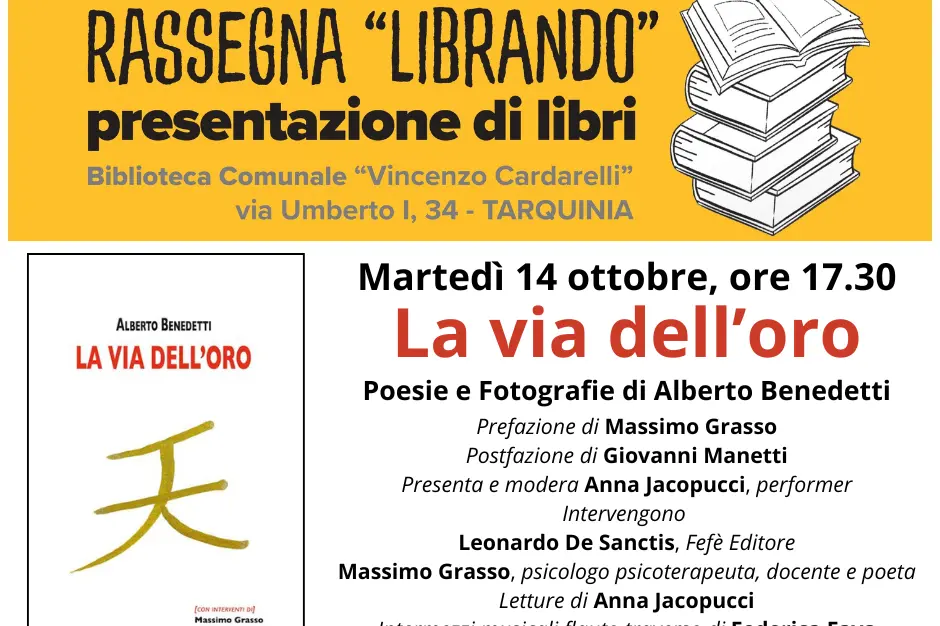 L’autore, Alberto Benedetti, presenta il suo nuovo libro La Via dell’Oro (Fefè Editore, 2025), un’opera che fonde parola poetica e immagine fotografica in un percorso di trasformazione e consapevolezza, dove l’amore, nelle sue varie espressioni, diventa una sorta di educazione sentimentale, anticipando così i temi della Giornata internazionale per l'eliminazione della violenza contro le donne del 25 novembre.