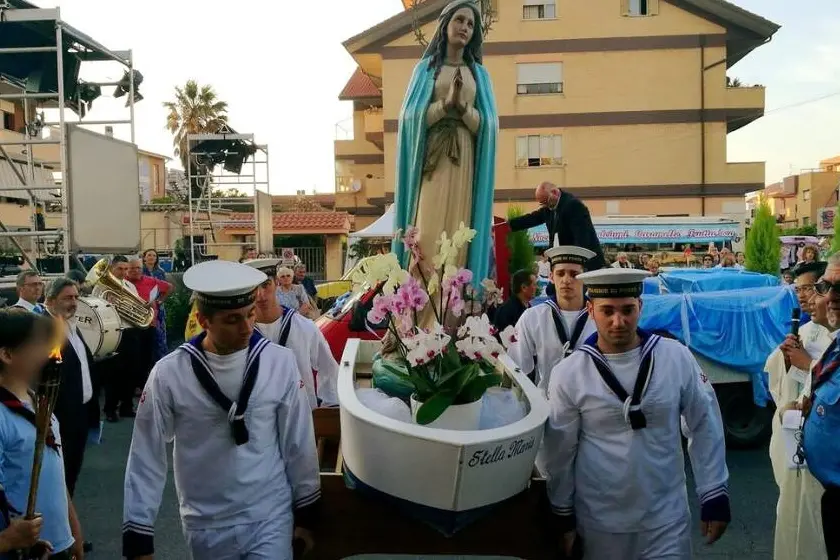 Domenica 22, al termine della Messa solenne delle 17.30, la Sacra Immagine della Madonna andrà di nuovo in solenne processione lungo le strade e sarà poi imbarcata su un’unità della Capitaneria di Porto di Roma sulla Fossa Traianea (il canale navigabile), per la benedizione al porto, alla città, ai fedeli ed ai pescatori. L’accompagnamento musicale sarà della Banda musicale della Pro Loco di Fiumicino. Illuminati a festa, tratti di via Giorgio Giorgis e viale delle Meduse, dove sarà posizionato il palco, ospiteranno i vari momenti della kermesse, i cui appuntamenti civili si apriranno in chiesa martedi 17 giugno, alle 19.15, con il prologo del Concerto del “Coro Stella Maris”, diretto dal Maestro Bruna Galante Liberati con all’Organo, Annamaria Iaria. Giovedì 19, alle 21, sul palco lo spettacolo al ritmo di danza con lo la Scuola Thru Ballet; venerdì 20 , alle 21, in agenda un tuffo nel passato, con la musica anni 70 -80-90 e Dance e Disco, proposta dal Gruppo “Gli accordi dei ricordi”; sabato 21, alle 21, tutti a cantare in piazza con il concerto Tributo agli “Stadio”, il mitico gruppo che ha fatto la storia della musica italiana; domenica 22 gran finale, alle 21, con la musica e comicità di Carmine Faraco con il Live Show “Cabarock”. Alle 23.30 l’estrazione della Lotteria. Per quanto riguarda il programma religioso: mercoledì 18 giugno ore 19:30 Solenne S. Messa all’aperto, ore 20:00 Solenne Processione inaugurale in Fiaccolata con la Sacra Immagine di Santa Maria Stella Maris. Percorso: Via delle meduse – Via del Predio Missale – Via Anco Marzio (direzione mare) – Vie delle Gomene – Via Tullio Ostilio – Via Domenico Bastianini – Via delle Meduse fino a rientro in Parrocchia. Giovedì 19 giugno ore 17.30 Triduo di preghiera, ore 18.30 S.Messa. Venerdì 20 giugno ore 17.30 Triduo di preghiera; ore 18.30 S.Messa. Sabato 21 giugno ore 17.30 Triduo di preghiera; ore 18.30 S.Messa. Domemoca 22 giugno Festa patronale S.Messe ore 8:00 – 11:00; ore 17:30 S. Messa solenne. A seguire solenne Processione con la Sacra Immagine di Santa Maria Stella Maris, accompagnata dalla Banda Musicale della Pro Loco di Fiumicino. Imbarco della Sacra Immagine della Madonna dinanzi alla sede della Capitaneria di Porto di Roma su viale Traiano.