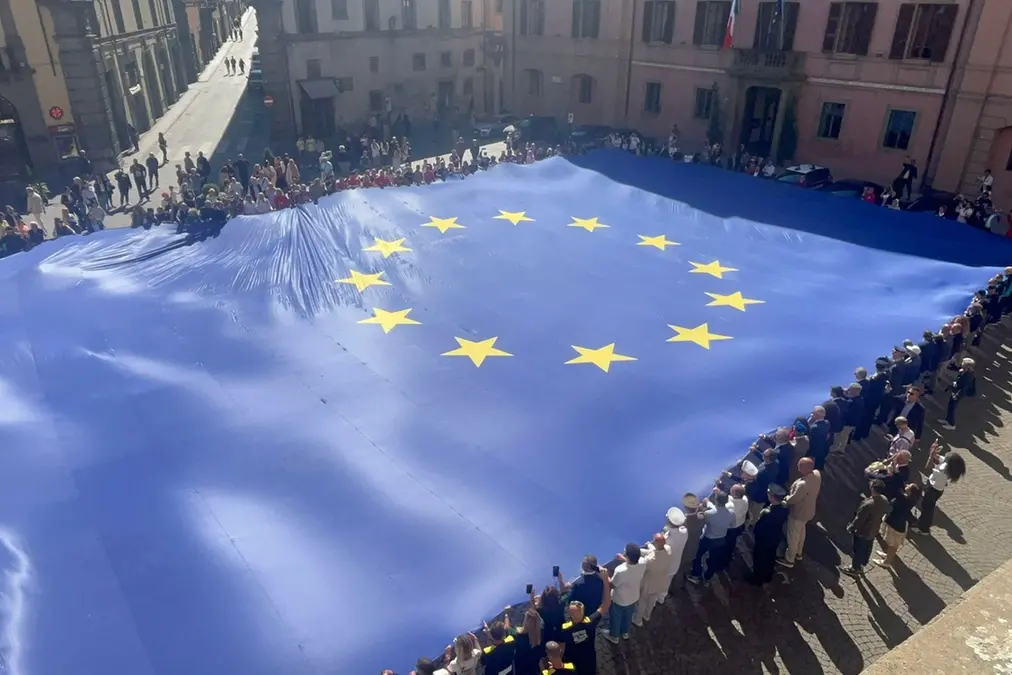 Dodici stelle su un tappeto blu hanno coperto piazza del Comune. Con lo srotolamento della più grande bandiera d’Europa: 20 metri per 30, ieri mattina è stato dato ufficialmente il via alla due giorni della Viterbo Half Marathon che oggi il suo clou con le gare. L’iniziativa è promossa dalla vicepresidente del Parlamento europeo Antonella Sberna nell’ambito della decima edizione della Settimana europea dello sport. In piazza insieme alla stessa Sberna e alle autorità tra cui il prefetto Pomponio, la sindaca Frontini, il capogruppo FdI in Regione, Daniele Sabatini, il questore Silipo e il presidente del Sodalizio dei Facchini, Mecarini, anche la sottosegretaria alla Difesa, Isabella Rauti.