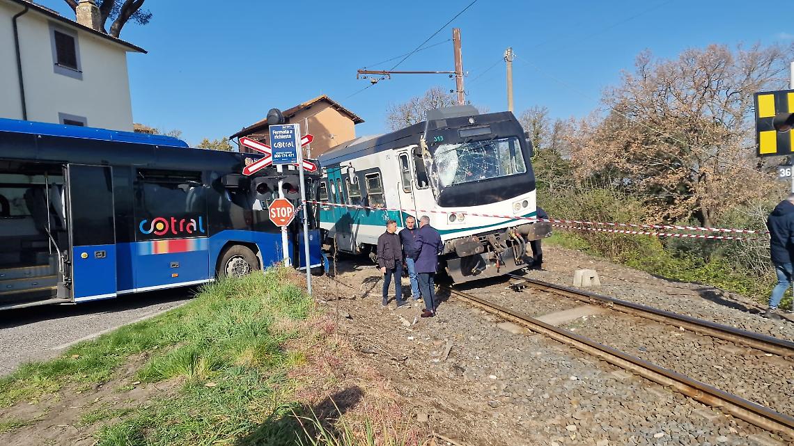 L'incidente è avvenuto questa mattina intorno alle 8,30 lungo la tratta ferroviaria della Roma Nord in località Fornacchia, tra Vitorchiano e Soriano nel Cimino. Per cause ancora in corso d'accertamento un autobus di linea della Cotral, pieno di studenti e pendolari, si è scontrato con un treno all'altezza del passaggio a livello. Alcune persone sono rimaste ferite, tra cui l'autista del treno, ma nessuna fortuntamente in maniera grave.