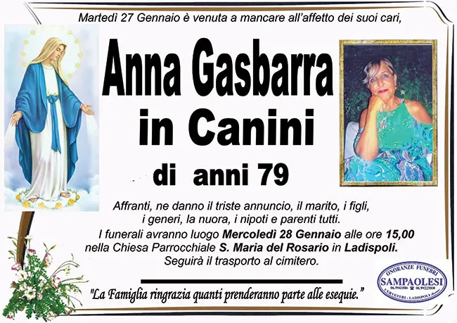 Home page>Necrologi>ANNA GASBARRA in CANINI ...