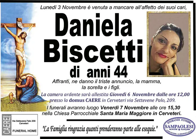 Home page>Necrologi>DANIELA BISCETTI di anni...