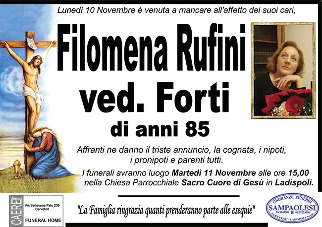 Home page>Necrologi>FILOMENA RUFINI ved. FOR...