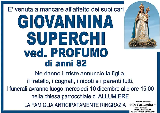 GIOVANNINA SUPERCHI ved. PROFUMO di anni 82