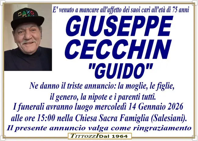 Home page>Necrologi>GIUSEPPE CECCHIN “GUIDO”