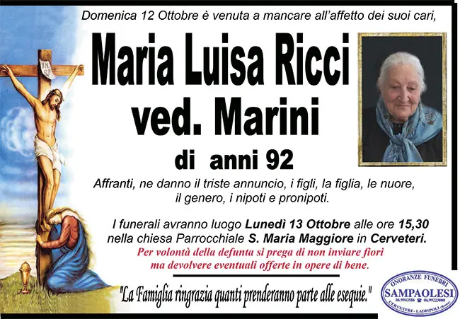 Home page>Necrologi>MARIA LUISA RICCI ved. M...