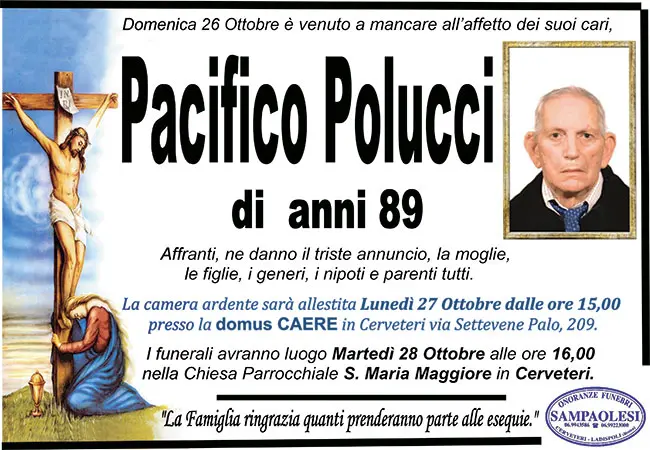 Home page>Necrologi>PACIFICO POLUCCI di anni...