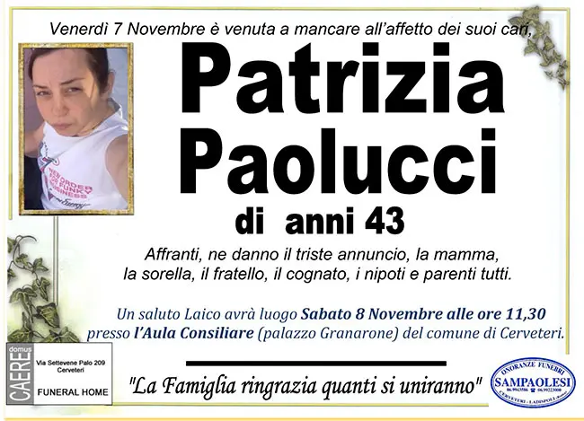 Home page>Necrologi>PATRIZIA PAOLUCCI di ann...