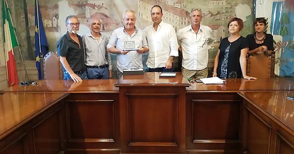 ALLUMIERE - La giunta Pasquini e l'associazione Amici della Musica di Allumiere ringraziano Fabio Quartieri. Mercoledì sera prima dello spettacolo del popolare attore Giobbe Covatta ad Allumiere il sindaco Pasquini, insieme all’assessore Luigi Artebani, all'assessore Tiziana Cimaroli e al maestro direttore della banda Amici della Musica Rossano Cardinali, alle 19.30 nell’aula consigliare del Comune di Allumiere hanno tenuto una cerimonia di ringraziamento in onore di Fabio Quartieri e a lui hanno donato una targa: ‘’A Fabio Quartieri per l’alta professionalità e lo spirito imprenditoriale che lo caratterizzano. Cogliendo l’occasione dell’evento ‘’Notte delle Candele in Polvere’’ presso il Castello di Santa Severa, ha evidenziato l’attaccamento alla comunità di Allumiere ed alla crescita dell’intero comprensorio. Con immensa gratitudine gli Amici della musica e il Comune di Allumiere».