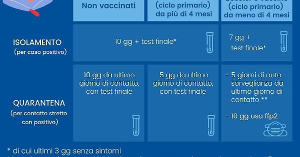 La Asl Roma 4, visto il numero di positivi e persone in isolamento o quarantena, ricorda le nuove regole da seguire. Per quanto riguarda l’isolamento sia i non vaccinati che i vaccinati con ciclo primario (da più di quattro mesi) dovranno stare a casa per dieci giorni – di cui tre giorni senza sintomi - con test finale. Se invece hanno effettuato la dose booster o il ciclo vaccinale primario da meno di quattro mesi l’isolamento durerà sette giorni con test finale.