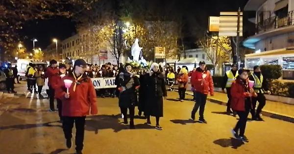 CIVITAVECCHIA - Si è rinnovato anche ieri sera il tradizionale appuntamento con il pellegrinaggio a piedi alla parrocchia di Santa Maria della Consolazione e Sant’Agostino. Con appuntamento alle 20.30 da largo monsignor D’Ardia, un nutrito gruppo di fedeli ha raggiunto a piedi la chiesa dove è custodita la Madonnina, in occasione dell’anniversario della lacrimazione, avvenuta il 2 febbraio 1995 all'interno del giardino della villetta della famiglia Gregori in via Fontanatetta, a Pantano. Proprio qui, ieri pomeriggio, si sono svolti anche dei momenti di preghiera in ricordo di quanto accadde 28 anni fa. Alle 23 il vescovo Gianrico Ruzza ha poi celebrato la santa messa.