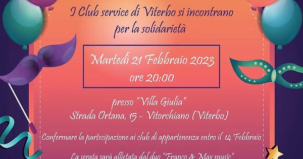 Viterbo - "L'unione fa la forza e la forza siamo noi" è il motto della serata organizzata dai Service Clubs di Viterbo che si incontreranno per la solidarietà martedì grasso, 21 febbraio 2023 alle ore 20:00 presso Villa Giulia a Vitorchiano.