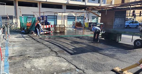 MERCATO - Intanto ieri, come promesso, l’amministrazione ha proceduto con la rimozione dei resti incendiati della casetta di legno e dei detriti vari rimasti dopo l’incendio a piazza XXIV Maggio del 20 marzo scorso. La ditta incaricata ha rimosso i rifiuti speciali e i commercianti delle “casette di legno” si sono messi, di buona lena, a ripulire l’area per cercare di rimuovere la sporcizia e la cenere rimasta.