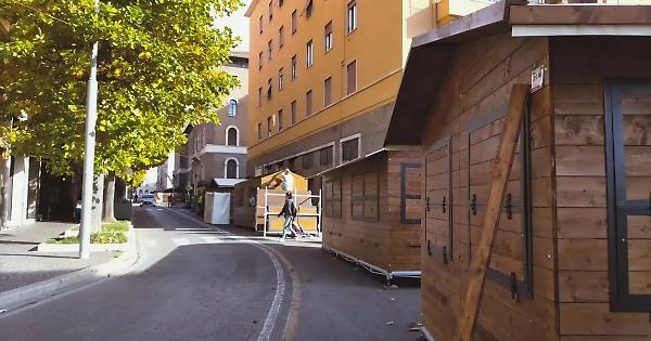 I primi timidi elementi che caratterizzeranno le festività natalizie 2024 sono comparsi in centro città. Da mercoledì ha infatti iniziato a prendere forma il mercatino di Natale con il montaggio delle casette di legno in via Marconi. Stand che quest’anno sono aumentati di numero, 31 rispetto ai 25 della precedente edizione. Sei in più ma con una minore spesa per l’amministrazione comunale che, invece dell’importo preventivato di 65mila euro, ne sborserà poco più di 46mila. Una delle strutture in legno sarà dislocata anche in piazza delle Erbe per celebrare, per la prima volta, una peculiarità tipicamente viterbese: il pesce di Sant’Andrea. Una specialità dolciaria di cioccolato che viene prodotta solo in occasione del 30 novembre. E mentre il montaggio procede abbastanza speditamente - il mini villaggio sarà inaugurato il 29 novembre - alla data di ieri ancora si doveva registrare l’assenza di luminarie e di addobbi per le vie del centro. Nulla insomma che possa già evocare l’atmosfera gioiosa che precede e accompagna l’approssimarsi del 25 dicembre.