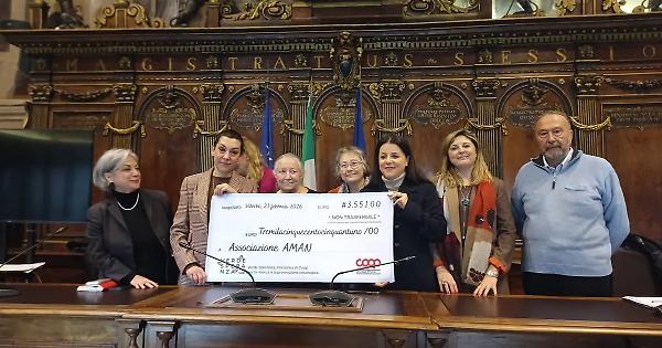 «Il mondo del commercio sposa l'etica e la solidarietà». A sottolineare il connubio Simonetta Radi, presidente del Consiglio di sorveglianza di Unicoop Etruria, durante la consegna della raccolta fondi dell'iniziativa Verde Speranza organizzata dalla cooperativa a favore dell’Aman. «Essere nella sala d'Ercole per Unicoop significa essere al centro della comunità» ha proseguito per poi specificare la somma raccolta tramite la vendita delle piantine: 3.551 euro. Ieri, alla presenza della sindaca Chiara Frontini, dell'assessore alle Politiche sociali Rosanna Giliberto, della presidente Aman Maria Neve, della dottoressa Francesca Primi del reparto di Oncologia dell’ospedale Santa Rosa e del vicepresidente Aman e consigliere comunale Umberto Di Fusco, la consegna simbolica dell’assegno mentre la somma è già a disposizione dell'associazione che opera per il miglioramento dell’assistenza e cura dei malati neoplastici. Sottolineando come «il Terzo settore sia spina dorsale irrinunciabile a supporto dell’attività del Comune», la prima cittadina ha tenuto a evidenziare che «il fare squadra tra istituzioni, commercio e terzo settore rappresenta la sostanza di una città che sostiene e si coalizza a favore di persone che vivono momenti di fragilità». Questa volta Aman, come spiegato dalla presidente Neve, ha scelto un percorso diverso per quanto riguarda la destinazione dei fondi «solitamente impiegati per il day hospital e l'acquisto di attrezzature per il reparto di oncologia». Una diversa destinazione illustrata da Francesca Primi, dottoressa del reparto Oncologia del nosocomio viterbese. «L’attività clinica presenta varie sfaccettature, oltre alla dotazione di beni durevoli. Ho quindi chiesto stavolta ad Aman una sovvenzione per un corso di emergenza che permetta la formazione, aumentandone le competenze, di tutti gli operatori medici e di una parte selezionata di infermieri. Perché sono diversi gli aspetti di cura da tenere in considerazione per migliorare l'assistenza ai malati oncologici» ha spiegato.