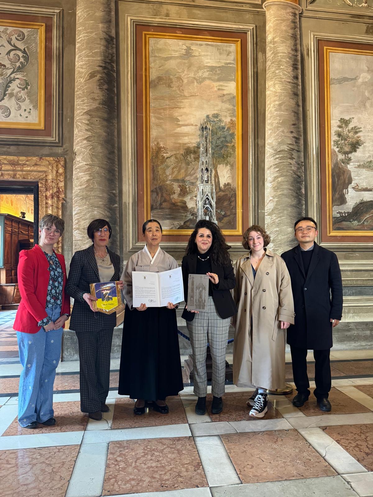 Martedì la sindaca Chiara Frontini e l'assessore ai rapporti europei e internazionali e ai rapporti con l’Università degli Studi della Tuscia Patrizia Notaristefano hanno accolto a Palazzo dei Priori una delegazione del King Sejong Institute, progetto nazionale della Repubblica di Corea, sostenuto dal Ministero della Cultura, Sport e Turismo e dalla King Sejong Institute Foundation (KSIF). Durante l'incontro la delegazione ha illustrato la volontà di attivare una sede a Viterbo e far partire un corso di lingua e cultura coreana all’Università degli Studi della Tuscia, sulla base del memorandum d'intesa (MoU) tra la Wonkwang Digital University e Unitus.