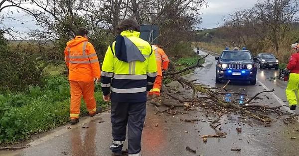 Rami e alberi caduti lungo le strade. Problemi per allagamenti nel sottopasso delle Grottelle