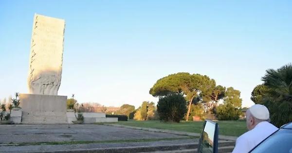 Il Pontefice sosta in silenzio davanti alla stele dell’eccidio avvenuto in Congo poco prima di imbarcarsi per il viaggio in Africa