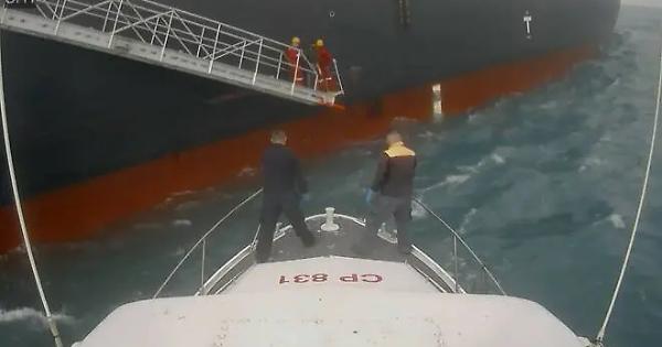 Due marinai sono stati soccorsi e portati a terra per essere curati sfindando le onde alte e il mare mosso
