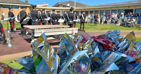 FIUMICINO - Una giornata diversa per i piccoli pazienti ricoverati all’Ospedale Pediatrico Bambino Gesù di Palidoro: per loro, in vista delle festività pasquali ormai prossime, i Carabinieri della Compagnia di Civitavecchia hanno organizzato una grande sorpresa in collaborazione con la Direzione Sanitaria. pPrima un concerto della Fanfara del 4° Reggimento a Cavallo che ha intrattenuto i bambini ricoverati intonando sigle di famosissimi cartoni animati e illustrato loro il funzionamento degli strumenti musicali, quindi una donazione di circa 200 uova pasquali, distribuite dai Carabinieri a tutti i piccoli degenti ricoverati e a quelli in day hospital. Ai bambini e ai loro genitori è stato regalato un momento di gioia e di distrazione e portato un affettuoso augurio di Buona Pasqua da parte di tutta l’Arma dei Carabinieri.