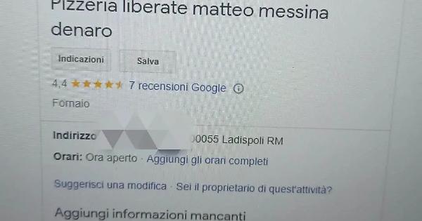 LADISPOLI – Non si riesce proprio a capire perché su internet sia spuntato fuori una specie di gruppo inneggiante il boss mafioso di Cosa nostra catturato dopo quasi 30 anni di latitanza. “Pizzeria liberate matteo messina denaro” si legge sfogliando sull’indirizzo di Google. Possibile possa esistere un locale così? In realtà andando sul posto non esiste alcuna attività. Chi c’è dietro? Un residente ha attivato le forze dell’ordine e presto la polizia postale potrebbe scoprirlo. Il tam tam inizia a diffondersi e il sindaco prende le distanze. «Uno scherzo di cattivo gusto – afferma Alessandro Grando – perché quando si parla di mafia ci si deve sempre ricordare che nel Paese ci sono state vittime innocenti e di certo non si può affrontare l’argomento con questa superficialità. Prendiamo assolutamente le distanza da chi ha pensato di mettere in piedi questa bravata».