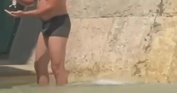 Come si può bene vedere dalle immagini riprese, l’uomo non si è fatto mancare nulla ed ha usato anche il bagnoschiuma durante la sua doccia nella fonatana.