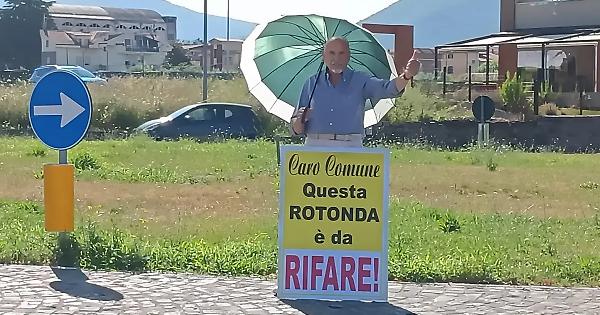 Poi è arrivato lui, per oltre 100 giorni è stato in presidio permanente con un cartello davanti al semaforo che, da 4 anni, regola la viabilità con senso unico di marcia. «Sono stato ricevuto dal presidente della Provincia Romoli – dice Faperdue - e dopo 10 giorni è stato firmato il decreto per i lavori di ripristino del doppio senso di circolazione». Ora Giovanni ci riprova e, dal 12 giugno scorso, è in presidio quotidiano di un’ora sulla nuova rotatoria realizzata per la confluenza del traffico proveniente a senso unico dalla Cassia nord e, in senso opposto, dalla Tangenziale Ovest e via Villanova. “Caro Comune questa rotonda è da rifare!”, questa la scritta sul cartello che Faperdue tiene in al collo tutti i giorni per protestare per un’opera pubblica che, secondo lui ma anche secondo tanti cittadini, è stata fatta male e permette l’ingresso obbligato di una sola macchina alla volta con un flusso veicolare che, Giovanni, stima sulle 1500 auto e mezzi all’ora.