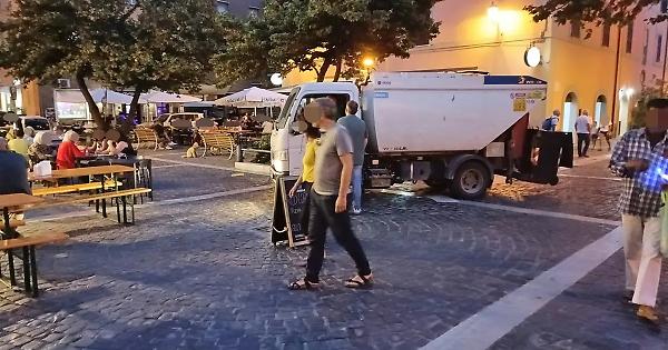 CIVITAVECCHIA – Le belle serate estive fanno rima con cene all’aperto ed intrattenimento in piazza. Ed arriva proprio da una della piazze maggiormente frequentate, quella del Ghetto, l’appello rivolto all’amministrazione e a Csp per cercare di migliorare il servizio di raccolta differenziata. In particolare per evitare che durante la cena, tra le 22 e le 24, si debba fare spazio al passaggio del mezzo della municipalizzata, con tanto di olezzo amplificato dal calore estivo. Una situazione non certo piacevole per i ristoratori della zona e per i commensali che più volte hanno lamentato questa situazione.