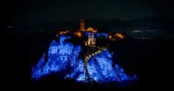 BAGNOREGIO - Duemila persone hanno partecipato alla grande festa di Bagnoregio per l’accensione permanente della rupe di Civita.