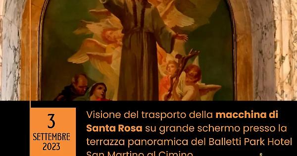 Domenica 3 settembre alle 20,30 proiezione in diretta del trasporto della Macchina di Santa a Rosa nella sala convegni del Balletti Park Hotel di San Martino al Cimino.