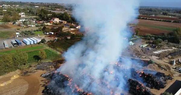 Centinaia di balle di fieno in fiamme
