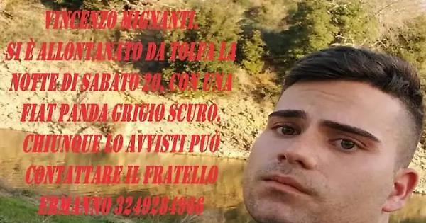 TOLFA - In collina tutti in apprensione per Vincenzo Mignanti, 23enne di Tolfa che da sabato è scomparso.