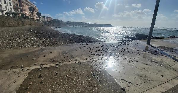 Colpo d’occhio alla Marina, invasa dall’acqua e colpita dalle onde. Detriti, legni e plastica sono stati portati a riva, con il mare arrivato fino a piazza Betlemme e piazza della Vita.