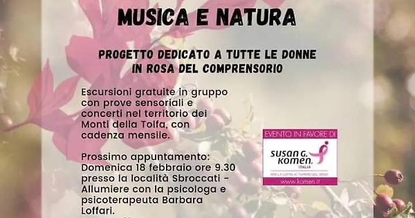 Il progetto prevede 10 escursioni gratuite dedicate alle “donne in rosa” del comprensorio, con prove sensoriali e concerti nel territorio dei Monti della Tolfa. Lungo il percorso le partecipanti avranno modo di conoscersi, sperimentare attività di connessione con la natura, fare esercizi di respirazione e meditazione.