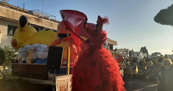 CERVETERI - Rinviata per maltempo a ieri, è finalmente esplosa la festa di Carnevale nella frazione di Cerenova. Ben quattro carri, realizzati da tanti volontari sotto la “guida” della Proloco delle Due Casette hanno invaso di musica e allegria le vie della frazione etrusca. A sfilare, insieme ai carri, anche i bambini dell’istituto comprensivo Marina di Cerveteri.