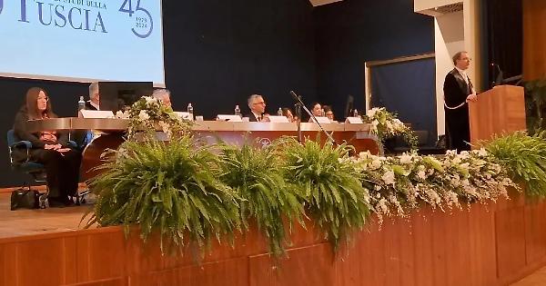 Stefano Ubertini, rettore dell’Unitus, apre così il suo intervento in occasione dell’inaugurazione dell’anno accademico 2023-2024 nel 45ennale della fondazione dell’ateneo viterbese.