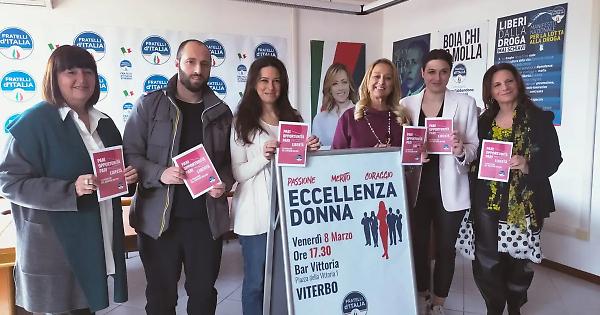 Donatella Salvatori, responsabile dipartimento Politiche sociali, tiene a sottolineare che «a un anno di distanza dall'insediamento, stiamo raccogliendo già i frutti delle misure del governo». La celebrazione dell'8 marzo per Fratelli d'Italia è poi proseguito nel pomeriggio con il premio “Eccellenza donna” dedicato, come spiegato da Martina Minchella e Antonella Rocchetti, «alle eccellenze femminili del nostro territorio».