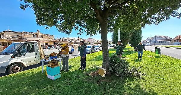 LADISPOLI - Una mattinata del «"fare" e fare bene». Così l'hanno definita da Fareambiente. I volontari sono stati impegnati per diverse ore su viale Mediterraneo per assistere alla rimozione di un grosso nido di api. La segnalazione era arrivata già questo inverno, ma solo, in sicurezza, si è potuto procedere alla rimozione e messa in sicurezza dei piccoli insetti. Un'operazione certosina «perché la salvezza delle api è la salvezza di tutti noi», hanno scritto i volontari. «L'emozione era all'ennesima potenza per tutti noi umili servitori».